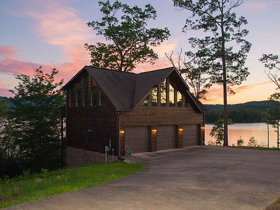 If Lakefront living is a must, look no further than this delightfully level point of land wwith over 250 feet of shoreline, 200-degree views across Lake Blue Ridge--including spectacular Island dotted sunsets and Mountain Views. This large, elaborate carriage house was built with three bedrooms and two and half baths and a three car garage. Full decks on both levels, vaulted ceilings, and large fixed windows for multi-directional lake views. Property gently slopes to the fire pit area and to the covered dock. Existing 2400 sq ft cottage is perfect lake retreat as is but could be added too, or substantially renovated. Adjacent lot is also available. Has been a profitable rental. Plenty of options here!