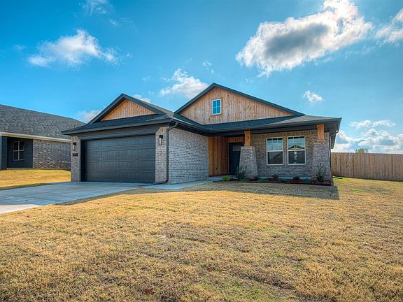 *Reduced over $5k* This corner homesite offers a delightful ambiance for entertaining. The open floor plan showcases a spacious floating island and a generously sized covered patio. The centralized utility room conveniently connects to the secondary bedrooms, while a mudroom near the entry adds functionality. The kitchen features quartz countertops and a gas range, while the main living areas feature elegant wood look tile. Additionally, this home includes an extended garage and an upgraded landscaping package, enhancing its overall appeal. Oasis Ranch is a quiet community featuring a playground and nature habitat with a pond. Blanchard was recently named one of the safest cities in Oklahoma. Included features: * One-year home warranty * 10-year structural warranty * Guaranteed heating and cooling usage of most Ideal homes * Fully landscaped front & backyard * Fully fenced backyard. Floorplan may differ slightly from completed home.