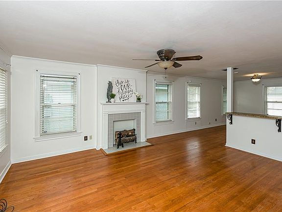 Open the door to GLEAMING, ORIGINAL, Hardwood floors in this charming home located in Broadmoor! Roof installed in 2018. Spacious floor plan includes a freshly painted interior, plus an updated kitchen boasting herringbone pattern flooring, galvanized backsplash, ss appliances, & crisp white cabinets. Living room features a faux fireplace. This home has 3 generously sized bedrooms. Full bathroom with a ceramic tiled tub shower combo. Fully fenced backyard features a nice covered patio perfect for a seating area. 2-car detached garage. This well-maintained home is a must see!