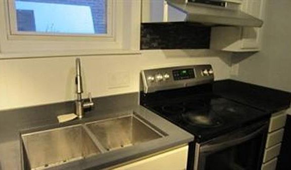 NO FEE! Renovated garden level unit w/ private rear entrance, and off-street parking for 1 car! Remodeled kitchen w/direct entrance to private patio. Remodeled bathroom with pedestal sink. Washer/Dryer in unit.