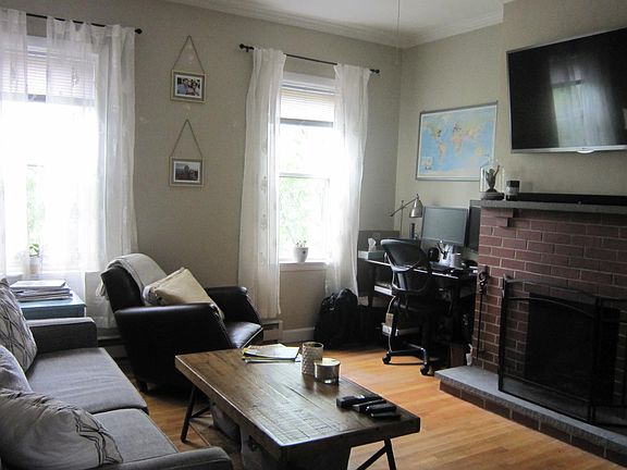 Spacious & bright 1 bedroom apartment w/1 off-street parking space! This top floor, 3rd floor unit offers an amazing private deck, eat in kitchen, W/D in unit, hardwood floors and living room with fireplace. Main Street location is super convenient and provides easy access to shopping, restaurants, T station, bus line. Avail for July 1st occupancy. The apartment will be freshly painted prior to a new tenant moving in. Tenant/s responsible for paying utility bills.