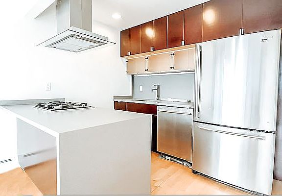 Just as Williamsburg is the first stop into Brooklyn on the L train let this 1 bedroom/1 bathroom apartment be the first (and last) stop on your new rental search: This beautiful and modern 1 bedroom/1 full bathroom unit is located in prime Williamsburg, minutes away from both the L and G trains. This unit boasts: + Scandinavian-style hardwood floors throughout the entire space + a 1 bedroom that opens up to an 8 ft tall built-in closet + a 1 full bathroom with a deep-soaking tub & shower + heated floors + heated towel rack + an open kitchen with a clean design and built in gas-range & oven within the island, marble countertops throughout, Finland-imported kitchen cabinets and drawers, stainless steel dishwasher, and fridge/freezer. 368 Manhattan Avenue is privately owned, allowing for a quick turnaround in addressing tenant concerns or issues 24/7 cameras surrounding the building + lot Video Camera Intercom System A/C wall units Separately gas metered furnaces allowing you to control usage of water and heat via Wi-Fi thermostat Additional extra sound stop insulation between apartments, walls, and staircases Communal washers / dryers located in building Communal access to an exercise space and gym equipment Communal rooftop access with lounge chairs, wrap around built in wooden bench, seated table all with a view of Manhattan and Brooklyn Communal backyard (approx. 600 sq. ft.) with Pergola and built-in wooden benches, additional chairs and tables, grills, bike racks.
