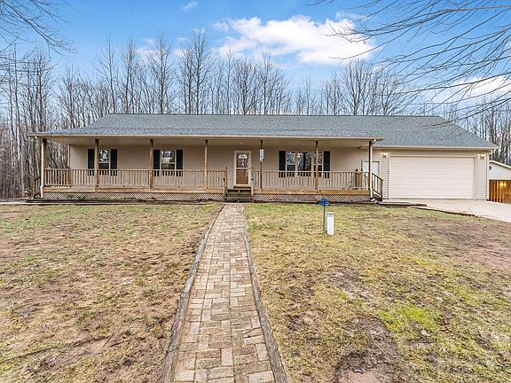 Set on just over 11.5 wooded acres just a few minutes outside Cadillac, this 3-bedroom, 3-bathroom home offers privacy, space, and natural beauty at every turn. A welcoming front porch—perfect for summer lounging—invites you to sit back, relax, and enjoy the peaceful surroundings. Inside, you'll find generous living space and a comfortable layout suited for both everyday living and entertaining. The primary suite includes a private bath and plenty of closet space, while the additional bedrooms offer ample room for family or guests. Step outside to explore the scenic views, mature trees, and open space that make this property truly special. A large pole barn adds extra flexibility for storage, hobbies, or future projects.