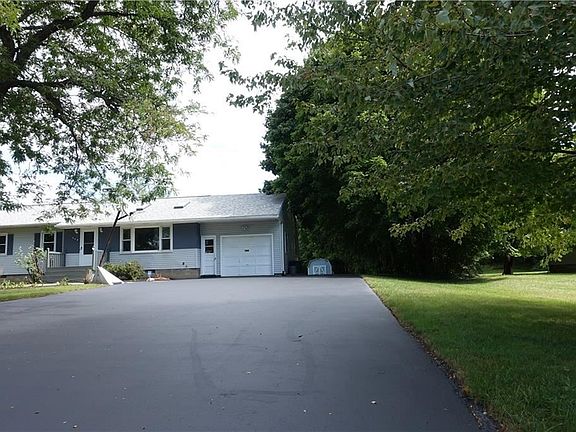 1.2 acres in the heart of Greece. 3 Bedroom 1.5 Bath ranch. Tear off 40 yr architectural roof installed approximately 3 years ago. Vinyl sided. New thermal windows. Cathedral ceiling with motorized blind skylights. Florida room. Eat-in KIT with stove top, built-in oven, disposal and refrigerator. Fresh interior paint. Most hardwoods recently refinished. High efficiency furnace. Central air. 2 big sheds. Above ground pool. Patio. Huge 9 car driveway just sealed. Fresh landscaping.