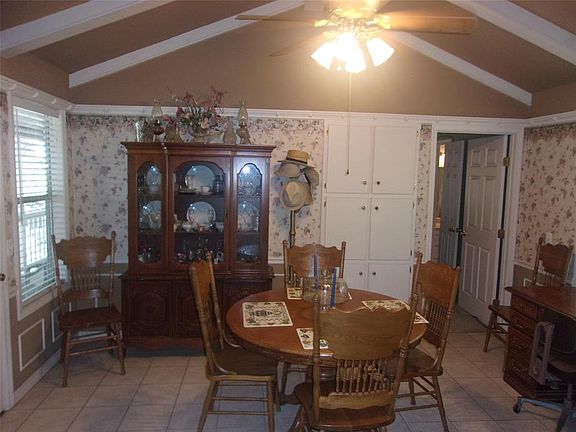 Very nice and well kept 3 bedroom 2 bath home, frame with brick trim. Metal roof, 1 car garage. Deck on front, stately oak trees surround the house. Small deck in back.Short distance from Amon Carter Lake. Chair lift on front of house remains.