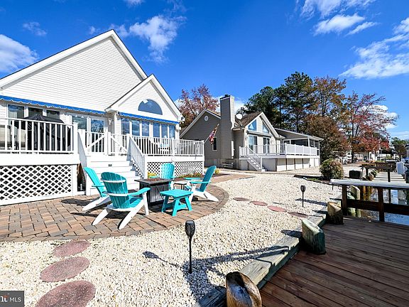 Luxurious living is guaranteed in this contemporary waterfront home in Ocean Pines. Come in and experience what cathedral ceilings, skylights, and a wall of windows does to create the most amazing sun-drenched, light filled inviting home. Your first word will be, “WOW”. This is an immaculate home offering two master suites, one up and one down along with a third bedroom on the main level. There are also three full bathrooms. Features include gleaming hardwood floors in the living room, a gas fireplace and architectural interest to keep you moving from room to room. The open floor plan makes entertaining a delight as the kitchen, great room, dining area and sunroom are all connected. This home offers the perfect balance of style, functionality, and space with an easy transition between indoor and outdoor living. Sliding glass doors open to a large 37 foot deck with power awnings overhead for sunny afternoons. Take a few steps down from the deck and enjoy the newly renovated gas fire pit, 60 feet of waterfront and a 23 foot pier. Since it is all about the water, you will love the dock and the electric boat lift with capacity up to 8,000 lbs. Sellers are offering their 2021 Godfrey Sweetwater boat as a separate transaction to the home sale. See documents uploaded with listing. Residents of this exclusive, amenity rich community called Ocean Pines enjoy indoor and outdoor swimming pools, a beach club in Ocean City, a Robert Trent Jones championship golf course with a new clubhouse, community center, tennis and pickleball courts, a dog park, a yacht club with marina and much more. Furniture is available as a separate purchase from the home sale. A one-year home warranty is also being provided to the new owners by the Sellers. Schedule your showing of this stunning home today!