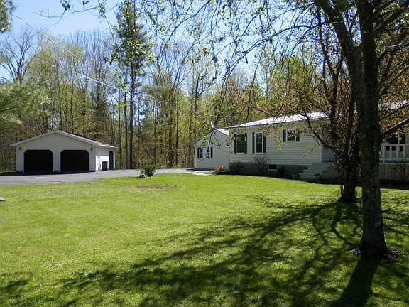 One level home on a 2.2 acre country road in Potsdam School District. Home features an open floor plan for the kitchen, living room, and dining room. Kitchen was redone and has Kraftmaid cabinetry, center island with additional seating, updated lighting, and lots of natural light. Living room has a propane fireplace and crown molding. Master suite has a walk in closet and office area as well as a master bath. The other two bedrooms are on the other side of the home. All but two windows in the home have been replaced, new furnace in 2017 as well as Air Conditioning. There is a screened in porch out back that also allows the cats to enter their outdoor cat enclosure. Outside is an oversized two car garage. The former one car garage has been turned into a workshop in one half and an exercise room in the other half. This space is also heated. The yard is nicely landscaped with many perennnials. Between the screened in porch and the workshop is a spacious concrete patio. Driveway is paved with a turn around spot. The backyard is completely fenced in which is great for animals or small children. This home has a lot to offer many types of buyers. Call today for your showing.