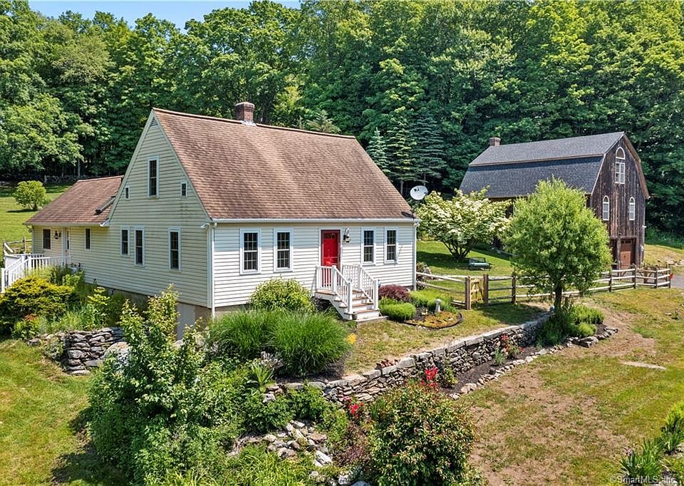 Welcome to this charming farmhouse in the picturesque town of Franklin, Connecticut. Built in 1953, this lovely cape sits on 74 acres of land and boasts a vintage charm that is hard to find these days. With a stunning grand master bedroom, 2 other cozy bedrooms and two full bathrooms, there's plenty of space for everyone to get ready and start. The spacious living room is perfect for relaxing or entertaining guests, while the adjacent dining room provides a great space for family meals and gatherings. But that's not all - this property also boasts a whopping studio building with four garage spaces! Whether you're a car enthusiast, need extra storage room or space for a workshop, this garage has you covered. Above the garage are 2 massive floors of beautiful post and beam studio space offering limitless possibilities. The property's surroundings are simply breathtaking. The town of Franklin is known for its scenic beauty, and this home is no exception. The home is surrounded by lush greenery and tranquil landscapes, with direct access to a pond and a personal hiking trail wrapping the entire property, making it an ideal spot for those who enjoy nature. The town's close proximity to major cities like Hartford and New London makes it an excellent choice for those who value convenience without sacrificing privacy and peace. Don't miss out on this opportunity to own this beautiful home in a serene and picturesque location!