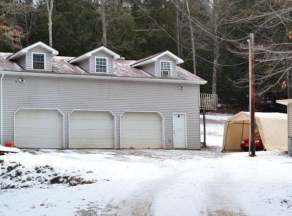 Come to the country & enjoy your own space on almost 8 acres. This was a doublewide but has been transformed with additions & 3 season room. A 3 car garage with a 2 bedroom, 1 bath apartment gives you income to pay your mortgage. A barn & some sheds & a creek add the best of country. New wood outdoor furnace. Garage rental income $600/month.