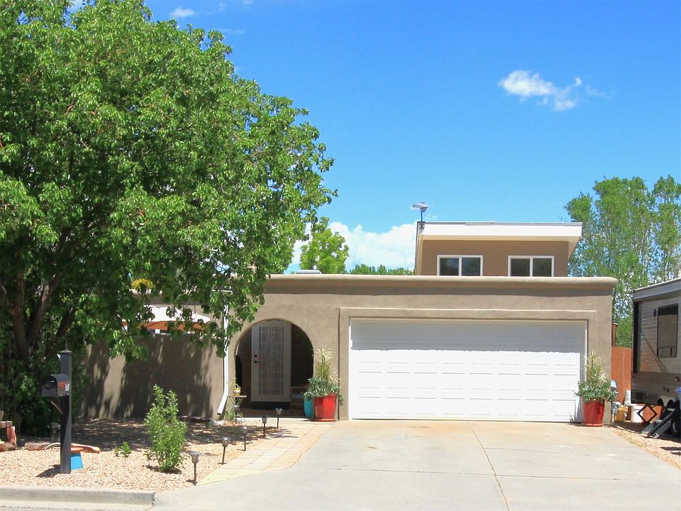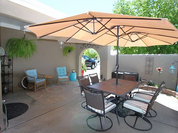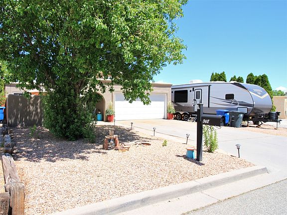 Fantastic home with lots of beautiful upgrades. This home has been remodeled inside and out and is ready for you to enjoy. As you approach, you will love the front courtyard with new light fixtures and fan. The courtyard is a great space to extend the living area of the home and is great for entertaining. Once inside you will notice the wood-look flooring that continues throughout the home and the charming Kiva fireplace in the living room. The kitchen was remodeled in 2022 with stainless-steel appliances, sink, faucet, and disposal as well as the addition of cabinetry with crown molding. The dining area with clerestory windows and access to the side deck is another great addition. The large primary suite has an attached bath that was remodeled in 2022 with a new double sink vanity, and fixtures. There are two additional guest rooms and an additional bathroom to give you lots of space. Additional updates to the interior include new doors, new ceiling fans, new outlets, and switches. The home is light and bright and has new LED lighting and fresh paint throughout. On the exterior, there are new windows and doors, new Canales, and new synthetic stucco. In 2021 a new furnace with central air conditioning was added so you will be comfortable all year long. The pretty security door in the front of the house is wonderful for allowing fresh air while keeping the home secure. There is RV parking, a 2-car garage with overhead shelves and the side yard shed for outside tools providing lots of storage options. This is a wonderful opportunity to enjoy a lovely home where all the work has been done and you can experience the comfortable living this home provides.