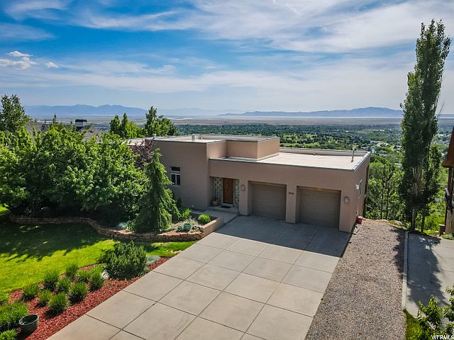 This stunning, custom built southwestern style home is perched on the highest double cul-de-sac road in Fruit Heights. Enjoy entertaining in the high-end, open concept kitchen. A wall of windows provides plenty of light and a breathtaking, unobstructed view of the entire valley. Relax on a tranquil private front patio just steps from the kitchen. The spacious master suite offers a large walk-in closet with laundry hookups. The spa like master bath has separate sinks and features a dual head steam shower and heated tile floors. There is plenty of room for everyone with all 5 bedrooms being oversized with large closets. Walk out your back door to your private secluded oasis. Roast marshmallows with your loved ones or simply enjoy the shaded, peaceful deck. An unfinished sport-court offers tons of space that can easily be turned into additional living areas. Schedule your private tour today!