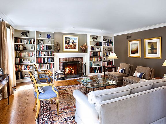 "Country Elegance" describes this lovely classic colonial privately situated down a long driveway in an enchanting setting bordered by a creek and backing on to 31 acres of preserved land. The gleaming pine floors throughout most of the home give off a rich hue complementing the soft colors of the walls. An abundance of windows allows natural light to stream into the home, making it even more welcoming. The very attractive living room with fireplace has multiple built-in shelves for the book lover. The family room with another wood burning fireplace is open to the sunny breakfast room and kitchen, and the expansive space is perfect for large groups. Tucked away off the family room is an office with built-in bookshelves and windows overlooking the lovely pool. The well designed kitchen is a Chef's delight and has a spacious center island, Dacor gas cooktop and electric double ovens, built-in Sub-zero refrigerator, Bosch dishwasher and double sinks. The upstairs main bedroom offers a sitting room with new Palladian window with views of the pool and gazebo and a recently remodeled luxurious main bath. Three additional large bedrooms and renovated hall bath complete the second floor. The lower level was totally remodeled a year ago and has French doors to a covered patio, a wet bar, a game/recreation room, and a 5th bedroom and full bath which would be perfect for an in-law suite or nanny's quarters. The expansive deck offers views of the woods and is a great spot for bird watching. The pool complex includes a 60 ft lap pool, a 13 ft. deep diving area, and a spa. It is surrounded by brick decking and is beautifully landscaped. The poolside gazebo is a wonderful spot to lounge and read a good book. This lovely home has been freshly painted inside and out.