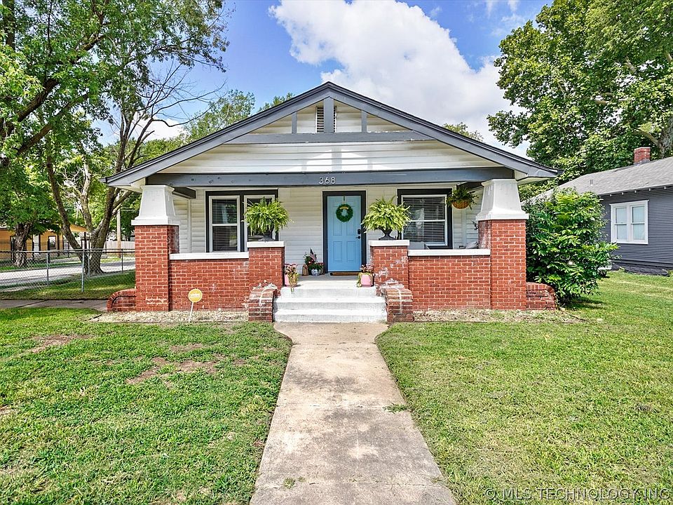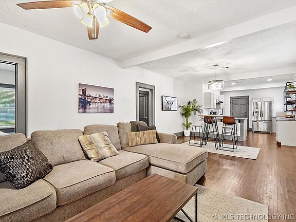 This charming 1920s bungalow in the Pearl District is a must-see! Conveniently located, just a 3-minute drive from TU and the popular Mother Road Market, this updated home offers a perfect blend of vintage charm and modern amenities. The open floor plan, large backyard deck, and covered front porch provide excellent spaces for entertaining guests or simply enjoying the outdoors. With 2 bedrooms, 1 bathroom, and an office that can easily be transformed into a walk-in closet or third bedroom, this home offers flexibility to suit your needs. Original hardwood floors have been beautifully restored, adding character and warmth to the living spaces. The kitchen features board and batten lined walls, ample storage space, and a cozy atmosphere for preparing meals. The bathroom showcases original black and white tile, adding a touch of nostalgia to the space. The extra deep garage with front and side load doors, along with a carport, provides plenty of space for the avid hobbyist or car enthusiast. Whether you enjoy tinkering with cars or need space for a workshop, this garage offers versatility and storage options. Don't miss out on the opportunity to own this adorable bungalow in a desirable location with unique features and character.
