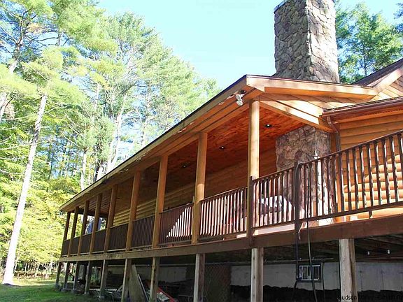One of the finest log cabins in the county and only 12 years young. The wow factor starts as you cross the stream and drive up to this beauty. This cabin is set very nicely along side of a rushing stream and it's now ready for it's next caretaker. Built like a fortress with 10" poured basement walls and massive pine logs with radiant heated floors in the basement and on the first floor. Wrap around decks go on and on and a lot of them are roofed. Sit out by that stream, known as the Rochester Creek, and listen to it's delicious sound. Gorgeous open floor plan with a kitchen to die for. Check out the 6 burner Thermadoor gas range complete with a marble back splash and Montana river stone adorning the exhaust hood. Built in Wolf oven and warming tray. Beautiful island with inlayed Iranian Onyx and Maple cabinets that go on forever. That amazing kitchen gazes out over the open living room and dining area. There you'll find a massive floor to ceiling wood burning fireplace adorned with the same stone work as the kitchen. You'll also find a gas heater built into the wall and a connection for a pellet stove. Soaring ceilings in this part of the home and huge gable windows to let in the light all day long. White oak floors through out the entire home. Multiple doors and sliders to the endless decking outside. First floor also contains a half bath just off the kitchen and a killer master suite. Huge walk in closet here as well as another wall mounted gas heater and access to the deck. Master bath is amazing with it's endless marble tile with black granite over lays, jetted tub and shower.