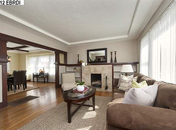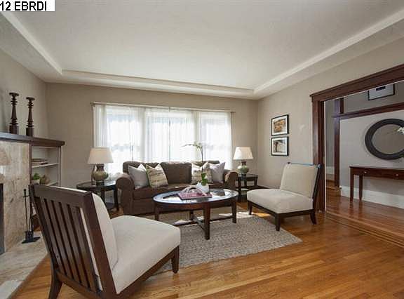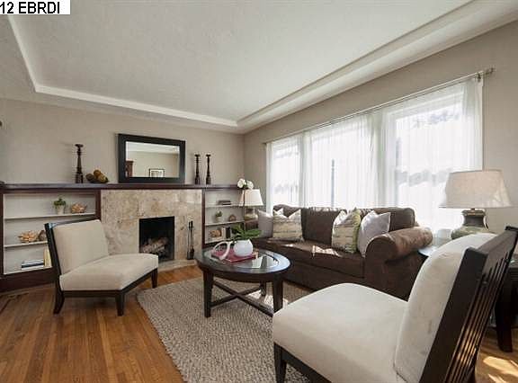 If you are the Hipster that likes to be close to everything but also needs room for weekend toys like Kayaks, motorbikes, snowboards, etc, Your search is over.  You will love the unusually large (for the neighborhood) two-car garage that comes with this lovely home.  A spacious entry charms you from the moment you enter with original wood detail, a stained glass window, stairs to the second floor, and a windowed pocket door leading to a large sunny living room.  This Great Room features a fireplace with built-in bookshelves, hardwood floors, and pillared openings to the very spacious and sunny dining room with box beamed ceilings.  You will easily picture a holiday meal being served with family and friends gathered around. The kitchen includes updated maple cabinetry and tiled countertops, a stainless steel double door refrigerator, dishwasher, and range. The floor plan gets high marks with great access to a small patio oasis from the kitchen perfect for enjoying morning coffee or weekend BBQ’s.  A small half bath and laundry area complete the lower level. Upstairs are 2 large bedrooms and one small one perfect for a home office or nursery. The master bedroom is very large and sunny, King Size bed welcome!!!  The second bedroom is also spacious and light filled. All have ample size closets. Close to the Grand Lake Theatre, Lake Merritt, Trader Joes, tons of restaurants, shopping, Peet’s Coffee and Starbucks - you name it, you won’t need a car to get to it.