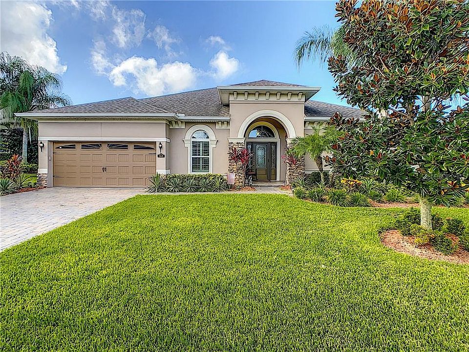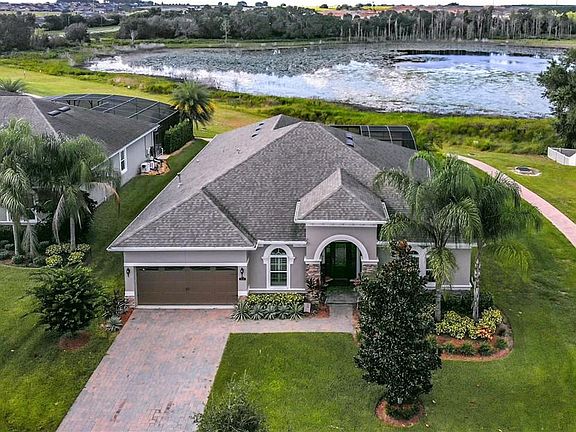 Custom Home with all the Bells and Whistles pristine and elegant residence in The Vineyard. This lakeside home with unparalleled natural surroundings features 4 BR with additional office/den, 3 full Bath, and pool with magnificent hot tube , plenty of outdoor entertaining space. Open floor plan kitchen showcases stainless steel appliances including double oven, gas stove, prep island and counter seating. beautiful country sink, Oversize floor tile throughout main areas with crown moldings and high ceilings. Accent tiles, tray ceilings, and rich cabinetry provide additional opulence. Great master bath with double vanity and separate shower and tub. Brick accents, custom landscaping and Drive Way is sealed beautiful trees with privacy arched entry and windows provide warm curb appeal. This home is 2,735 square feet of move-in ready luxury!