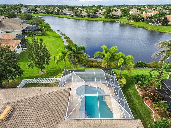 FULLY UPDATED POOL Home on Lake - 4 bed, 3 bath, 2 car garage, POOL with lakeview and fenced lot in Gated Greyhawk Landing Community! As you drive up to the home, you will notice the professional landscaping, custom driveway and walkway with tall glass door entry. This home has high ceilings and spacious open floor plan. Formal family room and formal dining room combo with french doors to lanai/pool area make it feel airy and bright. Open concept kitchen with custom 42" cabinets, granite counter tops, custom back splash, stainless steel appliances with French-door refrigerator, breakfast bar, and separate eat-in kitchen space with seamless glass window overlooking the pool/lake view. Living room open to the kitchen make this home ideal for entertaining with second french door out to the pool area and beautiful corner seamless glass window. Oversized master bedroom with french door and seamless glass window for a view along with his closet and her walk-in closet. Master bathroom has his/her granite vanities, garden tub and separate walk-in shower. Split bedroom Three additional bedrooms are all spacious with guest bath. Extra bonus is a third pool bath with shower - direct access to pool! Interior laundry room. Has it all- Newer A/C, new kitchen, granite, new interior paint, new laminate flooring, fixtures and much more! Greyhawk Landing offers Gated entry, resort style pool, tennis courts, playground, fitness center and more! Top rated schools, close to Lakewood Ranch Main Street, Ft. Hamer Bridge, I-75!