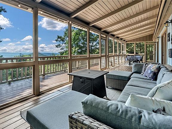SPECATACULAR VIEW! Welcome to Whiskey Bear—a turnkey cabin in the sought-after Walnut Mountain community offering, year-round mountain views that stretch as far as the eye can see. This incredible view is best enjoyed from the two-level deck, thoughtfully designed with multiple areas for relaxing and entertaining —including a screened porch with a fire table and dining area, open-air deck with a brand new hot tub, and a covered deck complete with a private putting green! Additionally, a rare fenced-in yard just off the deck provides a safe space for pets to roam freely. Inside, the open-concept layout continues to highlight the view with a wall of glass doors, soaring ceilings, skylights and a cozy gas fireplace anchoring the main living space. The kitchen is updated with granite counter tops stainless steel appliances, wine fridge and self closing drawers. The oversized primary suite on the main level offers easy, one-level living with heated floors in the bathroom, while upstairs features a small loft, three additional bedrooms, and a full bath—perfect for hosting family and friends. While Walnut Mountain is conveniently located near downtown Ellijay and Blue Ridge, it offers a range of amenities within the community including four lakes, a waterfall, hiking trails, an Olympic-sized pool, and courts for tennis, pickleball, and basketball. whether you're looking for a mountain getaway, a full-time residence with a main-level primary suite, or a high-potential investment, this property delivers. Whiskey Bear is sold fully furnished and already up and running in the short term rental program. With views this extraordinary, you won’t find a better value, the sky truly is the limit on this one-quite literally. Don’t miss your chance to experience elevated mountain living with comfort and ease at Whiskey Bear. Schedule your showing today!