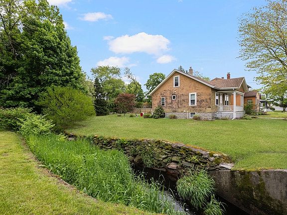 Charming Craftsman Cape on an oversized 18,295 sq ft lot with a serene babbling brook—private yet close to everything. Enter through the inviting front farmer’s porch into a warm family room and dining area. Refinished red pine hardwood floors add character throughout. The updated kitchen features granite countertops, recessed lighting, under-cabinet lighting, and comes fully applianced. A refreshed full bath with white tile surround, a hall closet, and a first-floor bedroom complete the main level. Upstairs offers two spacious bedrooms with ample closet space. Enjoy outdoor living with a multi-level deck perfect for summer BBQs, a fire pit for cozy evenings, and a yard shed for extra storage. Thoughtful upgrades throughout make this home move-in ready. A perfect blend of charm, comfort, and convenience—don’t miss it!