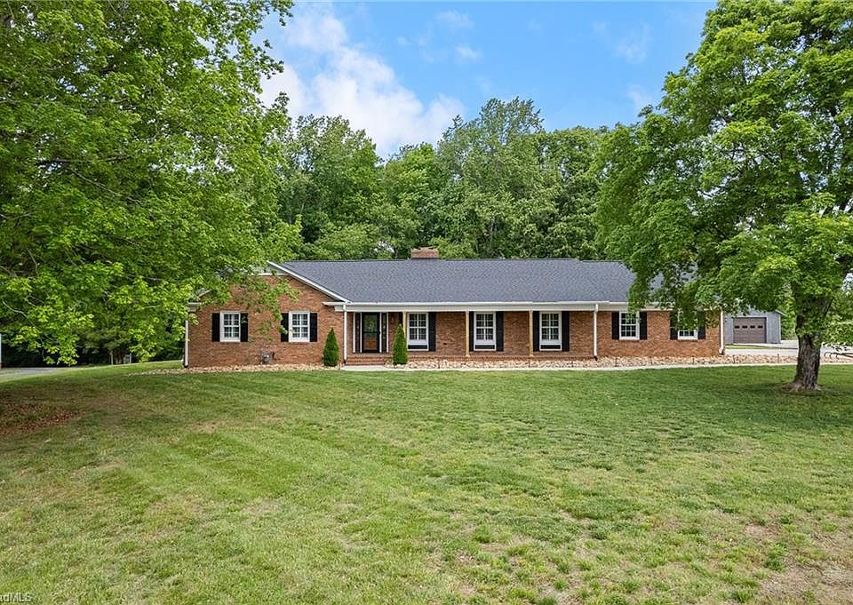 Enjoy the peace of the countryside in this beautifully remodeled 4-bedroom, 2.5 bath brick ranch, nestled on 4 scenic acres in Davidson County. The spacious, open kitchen features a large island and eat-in area, perfect for gatherings, along with a formal dining room for special occasions. Primary Bath features a large dual shower. Relax on the inviting covered front porch or unwind on the large covered back porch overlooking the expansive backyard with a concrete patio attached. Home features 3 fireplaces, 2 on the main level and one in the basement! This home also includes a 2-car attached garage and a 1-car detached garage/workshop ideal for hobbies or extra storage. The basement boasts a large finished den with a bar area, offering a great space for entertaining. The unfinished portion of the basement offers endless possibilities. Additional storage can be found in the walk-in attic. Don’t miss this rare opportunity to own a spacious, move-in-ready home! Agent is the owner.