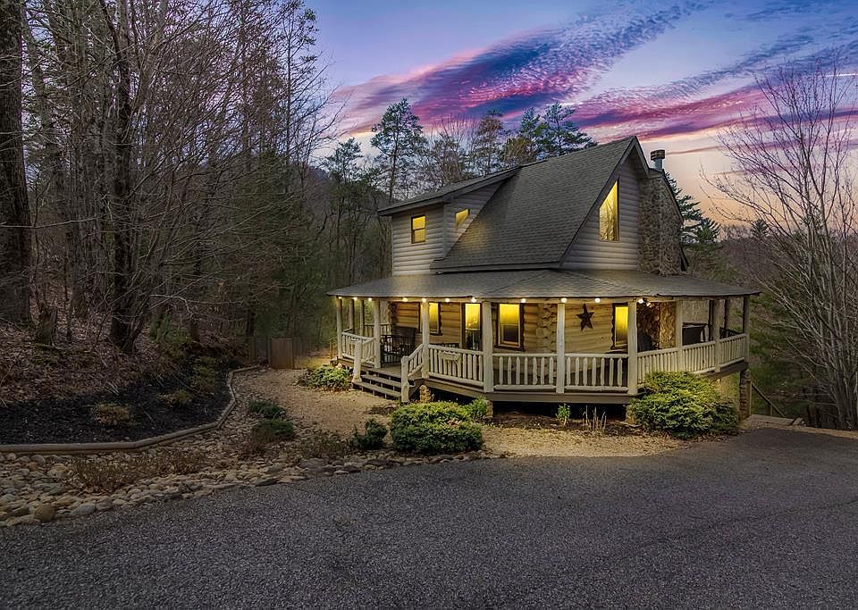 PRICE SLASHED 50K! Unbeatable deal in the sought after Aska Adventure Area! This stunning 2 bedroom, 3 bath home offers a true mountain retreat experience. Boasting a mountain view and privacy, this property is a short distance to town and an ideal investment for those seeking a short term rental or a peaceful personal getaway! The winding staircase adds to the charm of this unique cabin. There are two outdoor fieplaces that you can enjoy on the expanive covered porch on each level. The fenced in side yard is good for pets as well! Enjoy the benefits of the brand new roof and new D log siding. Call today for an appointment to view this FULLY FURNISHED slice of mountain paradise!
