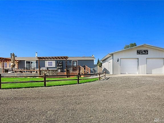 Beautiful 3 bdrm + 2 full bath home on 5 Acres! Kitchen w/new SS Appliances. Pellet Stove, Detached 2-Garage 30X32 is wired for compressor & welder w/storage. 48X40 Barn w/14ft roll-up door for RV, tack & holds 5 tons of hay; wired for Welder, Compressor & RV, Gated Pipe-Hand lines for irrigation, heated Tack Room. 3 horse stalls w/elect. for water trough heaters. Barn w/runouts & Round pin. New sprinkler System 6/2020. Buried wireless dog fence on the parameter of home. This is a must-see!!