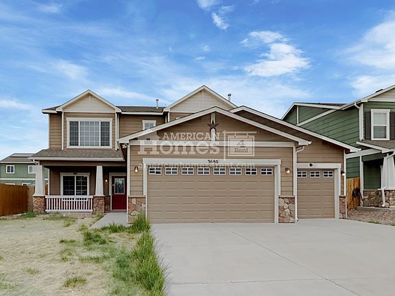 This gorgeous 2-story home is located close to Peterson AFB, Schriever AFB, and Ft Carson* This home has great curb appeal with a covered front porch and lush landscaping* As you walk into the entryway you will notice the open living area with beautiful wood style floors that flow throughout the main living area* The spacious Living Room has a huge window that allows natural light into the home* The Dining Room is located just off of the Living Room and flows into the Kitchen* The Kitchen has solid surface countertops, ample cabinets and countertops, and a walk-out to the backyard!* The Laundry Room is located just off of the Kitchen* There is a guest Bedroom and half Bath also on the main level* As you go upstairs, you will enter the loft with wood style floors* Just off the Loft is the Master Bedroom featuring a large window for natural light to pour into the room, adjoining 5-Piece Bath, and walk-in closet* There are 2 additional Bedroom(s) that share a full Bath* The