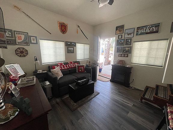 ~~ THE FACTS ~~ * 2020 Champion Sonoran, 1/1 - (12X32) * Built-On Room Addition Living Space * Add-On Laundry Room with Extra Storage Space * Covered Parking & Updated Gutters * HVAC - All Electric * Black Appliances (All Electric) * Washer & Dryer Included * Walk-In Shower * Extended Concrete Drive-Way * Current Space Rent Approx $425/Month ~~ THE PROPERTY ~~ Pineview RV Resort, a 55+ Community, is located in Star Valley, AZ with an elevation of 4,650 feet and is adjacent to the Tonto National Forest. You'll enjoy majestic pines, cool summers and lots of outdoor activities. Space rent includes water, sewer, garbage collection, cable TV, clubhouse & laundry facilities. This lot has minimal landscaping and is close to hiking, biking, lakes, boating, etc. Great summer get-a-way or 2nd home. Pet Friendly Park.