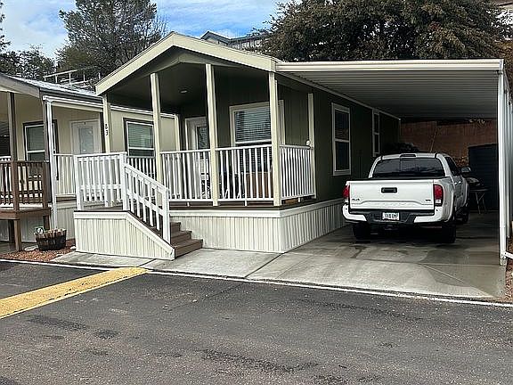 * 2022 Champion Sonoran SN11B, 1/1 * Approx 13x35 with Porch, (Total area: 396 Sq Ft) * Interior and Exterior Furniture Included * Gas Range * HVAC - All Electric * Storage Sheds * Walk-In Shower * Front Porch * 2 Car Carport * Bedroom 7'-11" X 10'-10" * Propane Tank Included * Current Space Rent Approx $450 / Month ~~ THE PROPERTY ~~ Pineview RV Resort, a 55+ Community, is located in Star Valley, AZ with an elevation of 4,650 feet and is adjacent to the Tonto National Forest. You'll enjoy majestic pines, cool summers and lots of outdoor activities. Space rent includes water, sewer, garbage collection, cable TV, clubhouse & laundry facilities. This lot has minimal landscaping and is close to hiking, biking, lakes, boating, etc. Great summer get-a-way or 2nd home. Pet Friendly Park.
