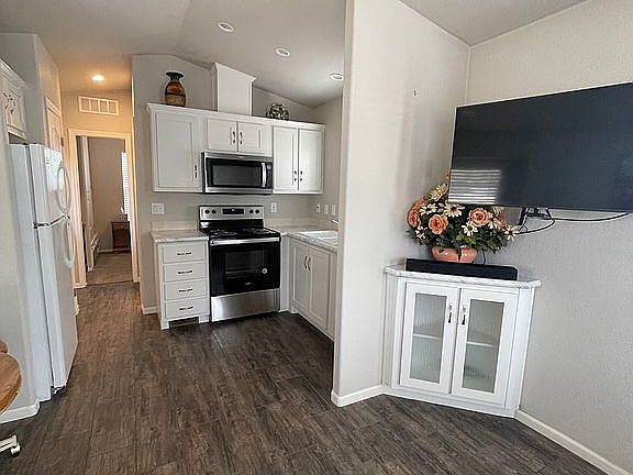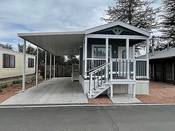 Cute and cozy 2021 Champion Park Model, 396 sf, Includes TV, Sleeper Sofa Bed, Kitchen Table, Bed, Covered Parking, HVAC - All Electric, All Electric Applicances, Between-The-Glass Window Blinds on Doors, Walk-In Shower, Spacious Bedroom Closet & Pantry, Modern Colors & Vinyl Flooring, Current Space Rent Approx $382.50/Month. ~~ THE PROPERTY ~~ Pineview RV Resort, a 55+ Community, is located Star Valley, AZ with an elevation of 4,650 feet and is adjacent to the Tonto National Forest. You'll enjoy majestic pines, cool summers and lots of outdoor activities. Space rent includes water, sewer, garbage collection, cable TV, clubhouse & laundry facilities. This lot has minimal landscaping and is close to hiking, biking, lakes, boating, etc. Great summer get-a-way or 2nd home. Pet Friendly Park.