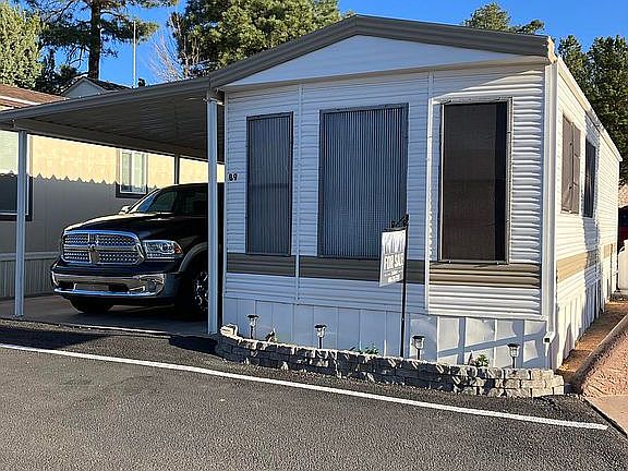 * 1987 Upgraded Maverick Mirage, 1/1 * 12x35 (420 Sq Ft) * Includes Sofa, Kitchen Table with Chairs, 2 Flatscreen TV's * Gas Range with New Stainless Appliances * HVAC - Electric * Side Deck - Covered * Bath Tub / Shower Combo * New Washer/Dryer All-In-One Unit * Bedroom Fits a King Size Bed * 2 Car Carport * Improvement: New Lifeproof Plank Flooring, New Butcher Block Counters, New Sink and Faucet, Shiplap & and Barnboard Accent Walls, New Lighting and Ceiling Fans * New Shut-off Valves in Kitchen, Bath Vanity & Washer * Extra Space for a 12X14 Room Addition or Shed * Space Rent Approx $450 / Month ~~ THE PROPERTY ~~ Pineview RV Resort, a 55+ Community, is located in Star Valley, AZ with an elevation of 4,650 feet and is adjacent to the Tonto National Forest. You'll enjoy majestic pines, cool summers and lots of outdoor activities. Space rent includes water, sewer, garbage collection, cable TV, clubhouse & laundry facilities. This lot has minimal landscaping and is close to hiking, biking, lakes, boating, etc. Great summer get-a-way or 2nd home. Pet Friendly Park.