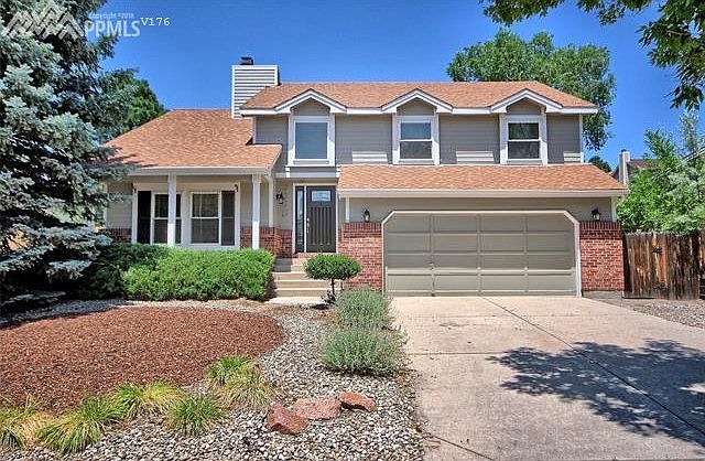 Wow, is this ever a great opportunity! Beautiful curb appeal with new exterior paint, Cheyenne Mountain views and established landscaping. Contemporary open floor plan basks in natural light, expansive hardwood flooring, vaulted ceilings, A/C, walkouts on each level and a fenced yard. The kitchen offers granite counters, stainless appliances, counter bar w/stools, dedicated pantry and large bay window seating nook. Dual sided masonry fireplace in the living and family rooms. Neutral baths w/updated tile in the master bath. Both an upper level deck and lower level patio, level lawn play area and terraced area with raised gardens. Slightly oversized garage with a service door to the side yard. Come see!