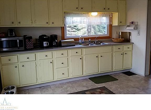 This home features 2 Large pole barns, acreage, many beautiful trees, newer vinyl windows, 2 car garage (RV overhead clearance on one overhead door). Freshly painted interior, newer carpets in living room.