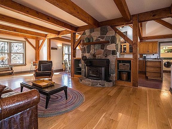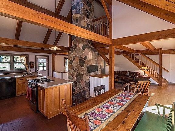 Beautiful custom Timber Frame, cedar sided home. Set on 2.76 acres, far back from the road, this is private country living within 10 minutes of both Dexter & Ann Arbor. The open and airy main house has a light-filled first floor master. Up the solid oak stairs are two additional bedrooms (one with a climbing wall), a bath, and an entertainment loft. The 2-car garage leads to an artist's studio and full studio apt. above. Some of the stones used in the 35' granite fireplace were harvested from the family farmland - indicated by an H'' inscribed on their surface. Sellers have installed a new Napoleon wood burning stove, and on-demand hot water system, plus new stove, dishwasher & W/D. The huge barn, just steps from the main house, provides an additional 2 parking spaces, large enough to stor store boats or other grown-up toys. Its second floor has built-in storage shelves and more open space. Tree house, rabbits & a chicken coop are included., Primary Bath, Shared Drive