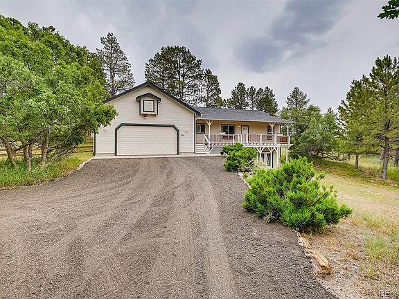Discover the joy of country life with this one of a kind country stunning 1.2 Acre delight*Beautiful pristine 3000+ total square foot 3 Bedroom, 3 bath Ranch home with partially finished Walkout Basement superbly maintained and ready to move in condition* Open, Spacious floor plan and main level Living Room with Gas Fireplace and access door to the back deck, wonderful cozy kitchen with matching stainless appliances, Quartz countertops, Knotty Maple Cabinets, nice Pantry and wood flooring with dining area close by* Master Bedroom with Master Bath, additional two bedrooms, and a separate full bath* Main floor Laundry* Enjoy the Sunrise from the private back deck or BBQ and entertain on a cool evening with included Awning, privacy and a peaceful setting, Fencing and a small dog run or garden area*The walkout basement has a concrete patio* Do you like to entertain? or watch Movies? Wide open Family Room with large Wet bar, Quartz countertops, Knotty Hickory Cabinets, Beverage Refrigerator, and tile flooring* Basement boasts a large utility room that if you so desired could be walled off to add a fourth bedroom, office/study or just simply love the great storage space that it is* Newer Carpet throughout, newer 50 Gallon Hot Water Heater, newer Furnace with Hepa Air Purifier, 2015 Roof with upgraded hail resistant shingles, Two Car oversized drywalled Garage* Crushed Asphalt driveway* This home has nice built-ins and great character* Unbeatable location just minutes from Parker, Elizabeth and the entire front range. The land is beautiful with mountain views peaking through the Trees, Rock outcroppings, and privacy. You can't go wrong with perfection! Home sold as is!