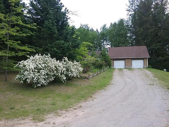 Cute and very private 3Bd 2Ba Frame Construction Home with large Screened Porch, wrap around Deck and Gardens. Ideally located less than 3 miles to both Burt and Mullett lake public access sites. 2.5 Car Garage with loft next to the house and additional insulated 2.5 Car garage with 10 x 26 work shop, all on 32+/- acres. Seller will consider sale of home on less acreage.