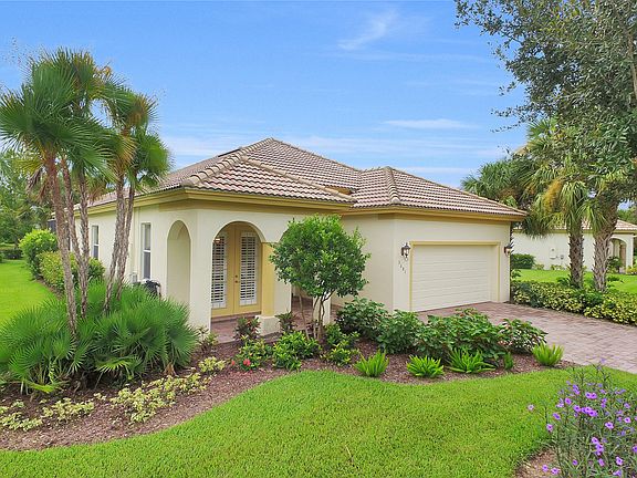This Home has everything that you dream of - Sunny Southern exposure on your Pool and Spa with long lake views framed by palm trees on large, oversized lot. * Watch the Cinematic Video to get a Realistic Preview. Professionally Decorated w/ Robb & Stucky furnishings, this Former Model home is offered Turnkey and is loaded with upgraded features – You’ll love the modern, open concept floorplan - 3 Bedrooms, 2 Baths, 2 car garage. You will be greeted by Rich, Hardwood Floors. Light & Bright Kitchen opens wide with double French doors, and Plantation Shutters. Newer Stainless Steel Appliances, Neutral tile floors, Gleaming Granite Counters, Breakfast Bar, Backsplash, R/O drinking water, 36” Wood Cabinetry with under-cabinet lighting & large pantry. Master Suite has private pool access, Tray ceiling with crown molding, enormous walk-in closet. Master Bath has dual Kohler sinks, deep soaking tub, walk-in shower and private water closet. Expanded, Paver Lanai showcases the spa w/ double waterfall cascading into your heated pool. Discover the friendly & active Verandah lifestyle - bike or walk on miles of nature trails, kayak, fish, golf, tennis, swimming fitness and more.