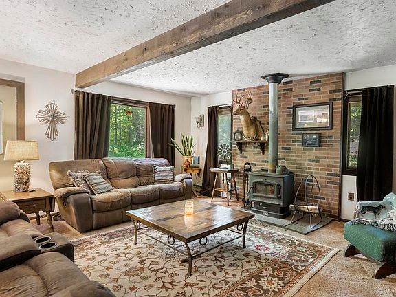 Here is your opportunity to own Under the Pines Farm Nestled between desirable Mullett and Burt Lakes, this delightful 3 bed, 2 bath home provides a unique opportunity to embrace the tranquility of rural living. Situated on an expansive 30+/- acres, the property is a well established hobby farm, and offers outdoor recreation to enjoy the beauty of nature. The home features a cozy living area with a welcoming wood stove, a well-equipped kitchen, and large windows that provide relaxing views of the surrounding landscape. Each bedroom extends comfort and privacy, making it an ideal space for families or those seeking a peaceful retreat. There is also an unfinished loft above the garage for overflow guest quarters, providing a comfortable and inviting atmosphere for any future development.