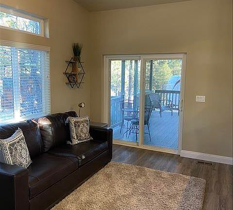 2014 Clayton Park Model with remodeling addition completed in 2020 to include large new living space and spacious deck. New metal roof, gutters and French drains installed, many large and transom windows to check out the pine trees all around. All doors, including sliding doors come with internal blinds.Large living room; wall mounted, internet enabled 42'' TV, chair, rug and sofa bed (all new) convey with the home. Many drawers/cabinets installed during remodel. Under cabinet area is wired and powered for Direct TV; Direct TV dish conveys with home and is wired to this cabinet for easy hook-up.Kitchen has all new stainless steel appliances, space saver microwave, double oven/range, dishwasher and side-by-side refrigerator with ice maker. Hard surface counter tops with integrated si
