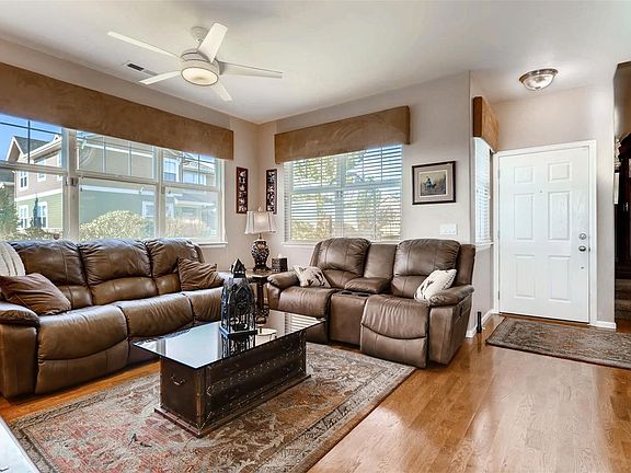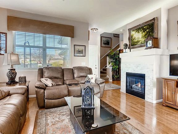 Rare opportunity with this Charming End unit, Main Floor Master Bedroom Town Home! End Unit, loaded with natural light! Immaculately kept and shows pride of ownership! Beautiful Hardwood Flooring on the main level. Kitchen with gas range, refrigerator, microwave, dishwasher, breakfast bar, Corian counters with beautiful new tile back splash, beautiful kitchen cabinetry with upgraded "Rev-A-Shelf" pullouts, BONUS built in china cabinet in the dining room!! Comfy great room with cozy gas fireplace, spacious main floor master bedroom w/5 piece master bath & walk in closet, main level laundry room with new deep sink. Up you will find 2 additional spacious private bedrooms with a full bath, walk in closet and tons of storage on both levels. This winter, park your autos in the over sized two car garage with tons of storage! Private front patio. Beautiful Breathtaking views of the W Mountains! Easy access to E-470 and shopping.