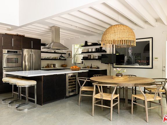 On a hushed Mar Vista block, this nearly 4,000-square-foot loft-inspired residence pairs dramatic volume with easy Westside living. A soaring two-story great room anchors the home, framed by a fireplace and an industrial glass facade that lifts open to the garden patio so everyday life spills outdoors. The open kitchen and dining zonecrafted with custom cabinetry, a stone prep island, and thoughtful detailskeeps cooking and entertaining effortless. Two secondary bedrooms plus a full bath and powder serve the main level. Upstairs, the private primary level feels like a retreat, offering a spa-style bath, generous walk-in closet, and an airy mezzanine perfect for an office or reading perch. The lower level adds a true cinema room for screenings or game nights. Out back, a freestanding studio with its own bath flexes for guests, creative work, or a gym. Mature landscaping, a tranquil water element, and a secure two-car garage round out the setting for a perfect 6 month lease. Close to neighborhood cafes and the coast, this home delivers light, scale, and versatility in one standout Mar Vista offering.