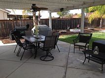 Well maintained and move-in ready single family home on large 0.22 acre lot. The over-sized living room has a cozy fireplace, built-in TV nook and new ceiling fan with remote. The living room opens to the kitchen which has newer energy efficient stainless steel appliances and new tile flooring. The large and convenient laundry room is located off the kitchen and garage. The master suite is located on the left side of the home. It has a sliding glass door leading to the patio, ceiling fan, walk-in closet and separate shower/tub. The other two bedrooms are located on the right side of the home. Both have decorative crown molding. Outside there is a large grassy yard area, dog run and horse shoe pit. The back of the home has a super large party size patio.