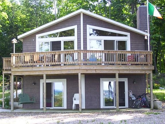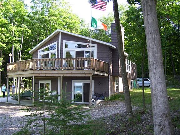 This home has a wonderful view of the Harbor light and old Coast Guard bldgs at Whiskey Point, plus a large part of the interior of Beaver Harbor, Gull Harbor, Gull & Hog Islands, and the boat channel entrance to Beaver Harbor. It sits on 1.75-acres with 183.58 ft of Lake Michigan frontage. The beach is a combination of sand & stone bottom - not a perfect swimming beach but acceptable. It has a wood-burning fireplace and a lot of glass on the lake side leading to a fantastic deck out front.