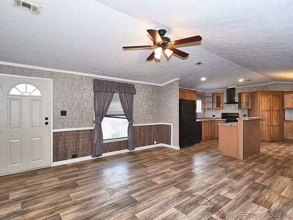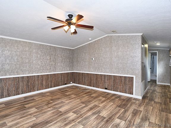 Beautiful acreage boasting newer custom built single wide mobile home. Setting on 5 acres m/l. 3 bedroom/2 bath. Covered front porch. Covered back deck with serene view.