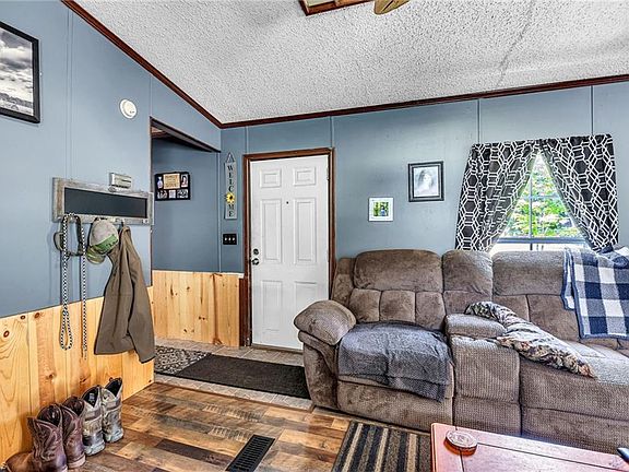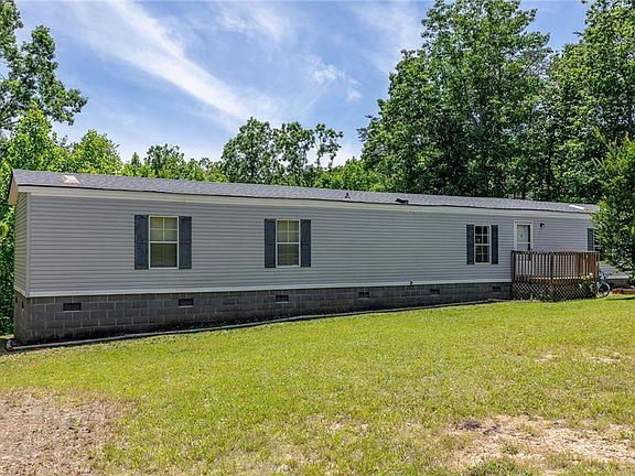 This singlewide home on 1.55 acres in Franklinville offers a secluded and serene setting for outdoor enthusiasts. The property features a firepit and a fenced-in dog-run in the backyard, as well as a natural spring and stream at the back of the property, per the seller, which is surrounded by woods. The interior includes 2 bedrooms and 2 bathrooms, with the primary bathroom featuring a garden tub and separate shower, as well as a skylight. The primary bedroom also includes a walk-in closet. The second bedroom has carpeting and a skylight. The exterior is vinyl with a cinder block foundation. The property also includes a washer and dryer. With its peaceful location and outdoor amenities, this home is ideal for those who enjoy hunting and outdoor activities.