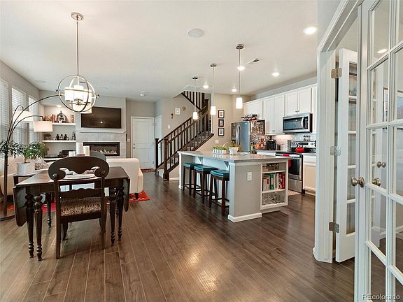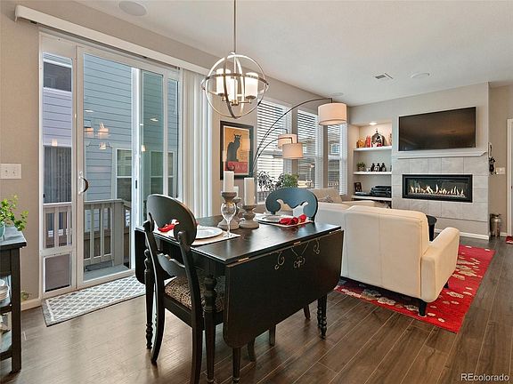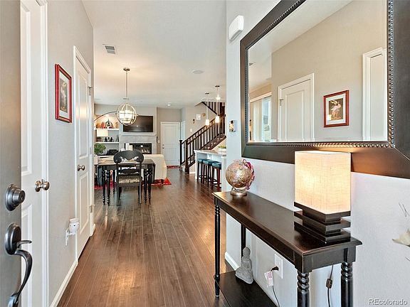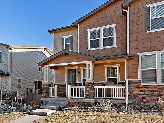 Welcome to 3682 Happyheart Way! This low maintenance 2 bedroom/2.5 bathroom townhome with 2 car attached garage located in the The Meadows features luxury vinyl flooring throughout the great room, dining room, kitchen and office. The Great Room has an updated modern gas fireplace and built-in shelving with prewired surround sound, The spacious cooks kitchen features 42" upgraded cabinets with pull out shelves, under cabinet lighting, large panty and upgraded backsplash and a huge solid surface island perfect for entertaining. Large windows through out the home bring the outside in providing beautiful natural lighting all day. The dining room opens up to the private side yard featuring low maintenance turf as well as custom lighting and a custom stone patio perfect for BBQs. Upstairs you will find a large loft perfect for a second home office, media room or craft room. The quiet primary suite that faces the front of the property with views and a large walk-in closet as well as ensuite bathroom with dual vanities, large walk-in shower and linen closet. Just outside the primary suite is a convenient second floor laundry room with storage. The guest secondary bedroom is on the other side of the loft offering privacy as well as dedicated second full bathroom. The Meadows is a master planned community with multiple pools, parks, trails, open space and highly rated neighborhood schools. All of his located minutes to I25, Outlets at Castle Rock, Golfing, Trails, and downtown Castle Rock!