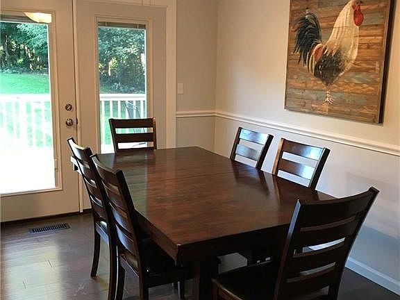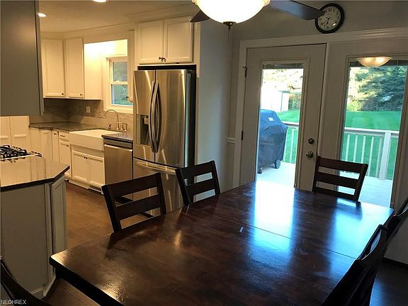 Wait until you see this kitchen! Custom built in 2018 featuring white cabinets with crown molding, granite counter tops, ceramic back splash and a farmhouse sink. The new laminate floors extend into the newly remodeled dining room with new french doors that lead to the 33 x 12 deck overlooking a pond and park like back yard. The main bathroom was also remodeled in 2018 with new vanity and ceramic tile floors. Living room has a bayed front window and new carpet that continues into the three upstairs bedrooms. Finished basement offers a large fourth bedroom and an office plus another full bathroom. Other newer updates include new furnace 2017, hot water tank, water softener, and extension to shed in 2018. Hurry this one won't last!