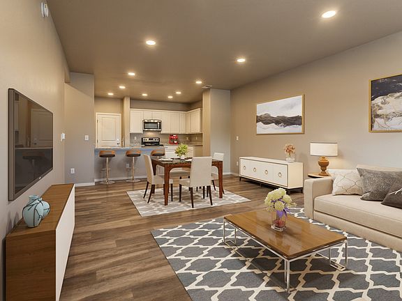 Estimaged May/June completion!Brand new, beautiful townhome located at Harvest Village in Wellington! The Ouray floorplan includes 3 bedrooms, 2.5 bathrooms, and an oversized two-car attached garage. The interior is stylishly appointed with painted Macchiato grey maple cabinetry, granite kitchen countertops, stainless steel appliances, and vinyl plank wood flooring. Walk-in closets are featured in all bedrooms, and the master suite boasts a spacious double vanity.