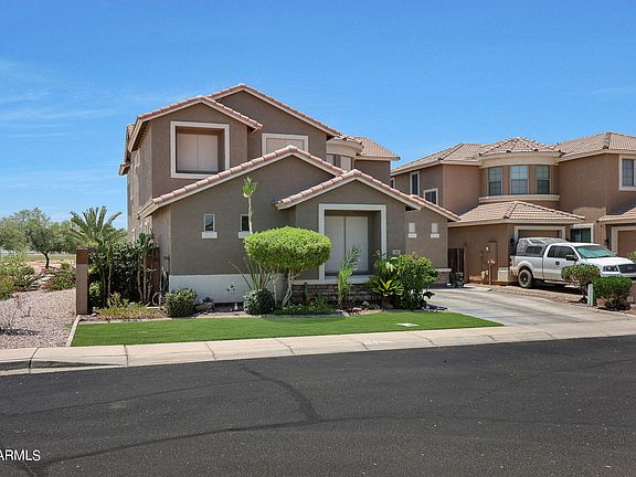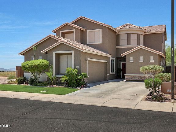 Welcome to your dream home in Buckeye's Westpark! This stunning CUL DE SAC property features a spacious layout with 5 bedrooms and 4 FULL bathrooms. Downstairs, you'll find an ensuite with its own full bathroom perfect for guests or a home office, another guest bedrooms and a full bathroom. The kitchen is a culinary delight, recently upgraded neutral granite countertops, modern pendant lighting and convenient pull-out trays in the cabinets to keep everything organized. Upstairs, a versatile flex space can serve as a loft, office, or media room, complete with breathtaking mountain views you can enjoy from the balcony. The backyard is an entertainer's paradise with a newly resurfaced pool decking play pool, real lush grassy area, and a large covered patio for outdoor gatherings. Additionally, this home is equipped with beneficial sunshades and solar panels that will be paid off for the buyer at closing, ensuring energy efficiency and savings. Don't miss the opportunity to make this exceptional ORIGINAL HOMEOWNERS' property your new home!