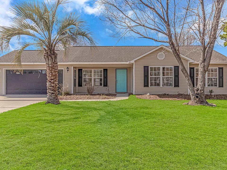 Thinking about living near the beach? This charming ranch-style home has been updated, boasting brand new kitchen appliances, countertops, bathroom vanities, carpeting, and paint. With ample space for comfortable living, featuring a Carolina room, two-car garage, and fenced-in backyard. The HVAC and Water Heater were replaced in 2017. Quietly tucked away off of Hwy 90 in Grove Brook Estates and conveniently located only minutes to North Myrtle Beach, SC. As you step onto the inviting front porch and through the front door, you're greeted by cozy carpet flooring and a cooling ceiling fan in the living room. The kitchen features linoleum flooring, new stainless steel appliances, including a garbage disposal, oven, stove, microwave, and a pantry for organization. Gather with loved ones in the adjacent eating area. Step into the expansive Carolina room, flooded with natural light, offering versatile space for a home office, gym, or entertainment area. Access the fenced backyard through the patio, ideal for outdoor enjoyment and relaxation. Adjacent to the living room, you'll find the washer and dryer closet; the washer and dryer convey with the home. Conveniently located off the hallway are a linen closet and coat closet, providing ample storage space. The generously sized master bedroom offers a tranquil retreat with its own ceiling fan, carpet flooring, and en suite bathroom featuring double sinks, new vanities, a luxurious tub, shower combination, and a toilet. Plus, enjoy the convenience of a large walk-in master closet for all your storage needs. The first and second guest bedrooms feature ceiling fans, carpet flooring, and spacious closets, ideal for accommodating guests or setting up a home office. The guest bathroom boasts a new vanity sink, tub, shower combination, and natural light streaming in through the window. Parking is a breeze with the attached two-car garage, providing ample storage space and convenient attic pull-down stairs for easy access. Grove Brook Estates is a quaint community in Little River, SC, featuring super low HOA fees, a gated storage yard, plus a community park area. Don't miss out on this opportunity to make this meticulously maintained home yours! Schedule your showing today and envision the possibilities of living in this wonderful space.